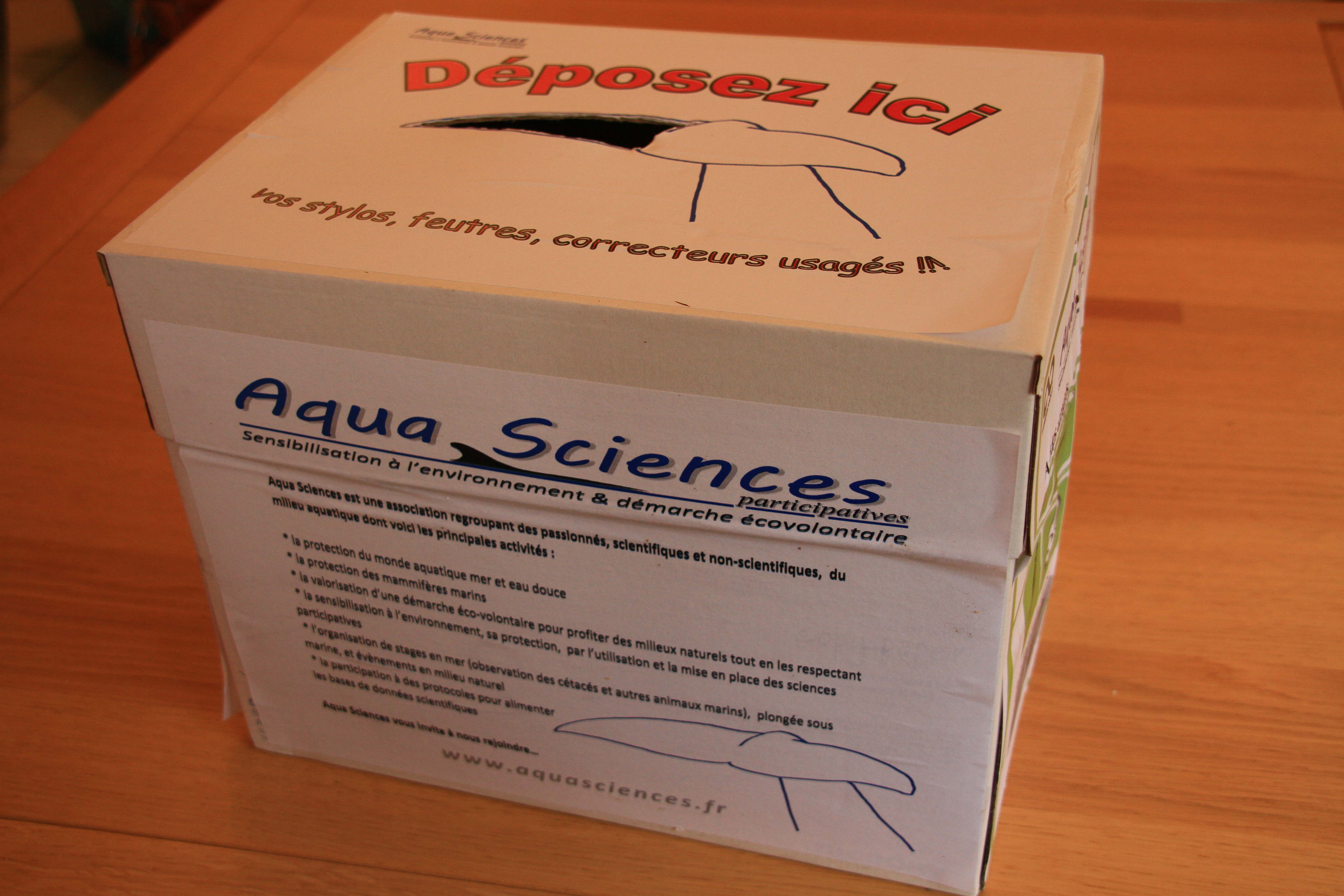 Après la récupération des cartouches d’encre et des films radio, Aqua Sciences se lance dans la récupération des stylos, critériums, feutres et correcteurs usagés !!