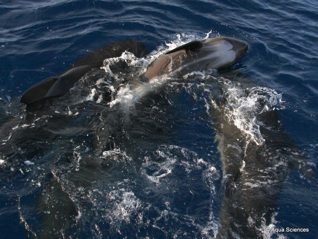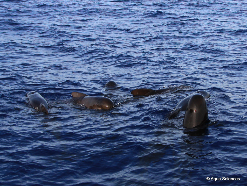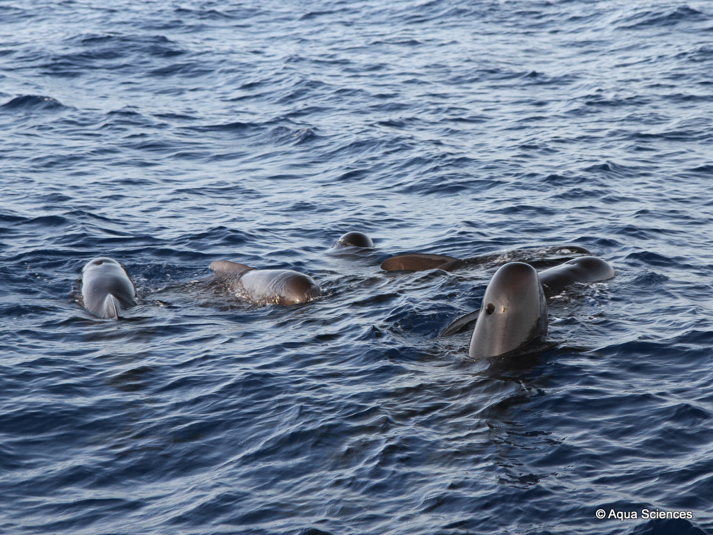 Nous avons rencontré à plusieurs reprises des groupes de dauphins blancs et