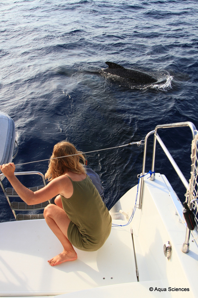 Après quelques heures de navigation, nous apercevons des souffles assez espacés. Nous nous approchons