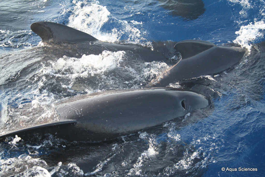 Nous croisons sur le trajet du retour, un important groupe de dauphins blancs et bleus.