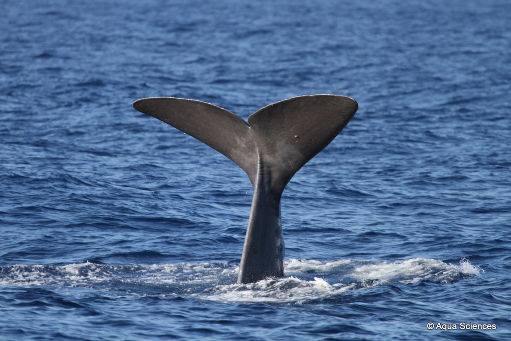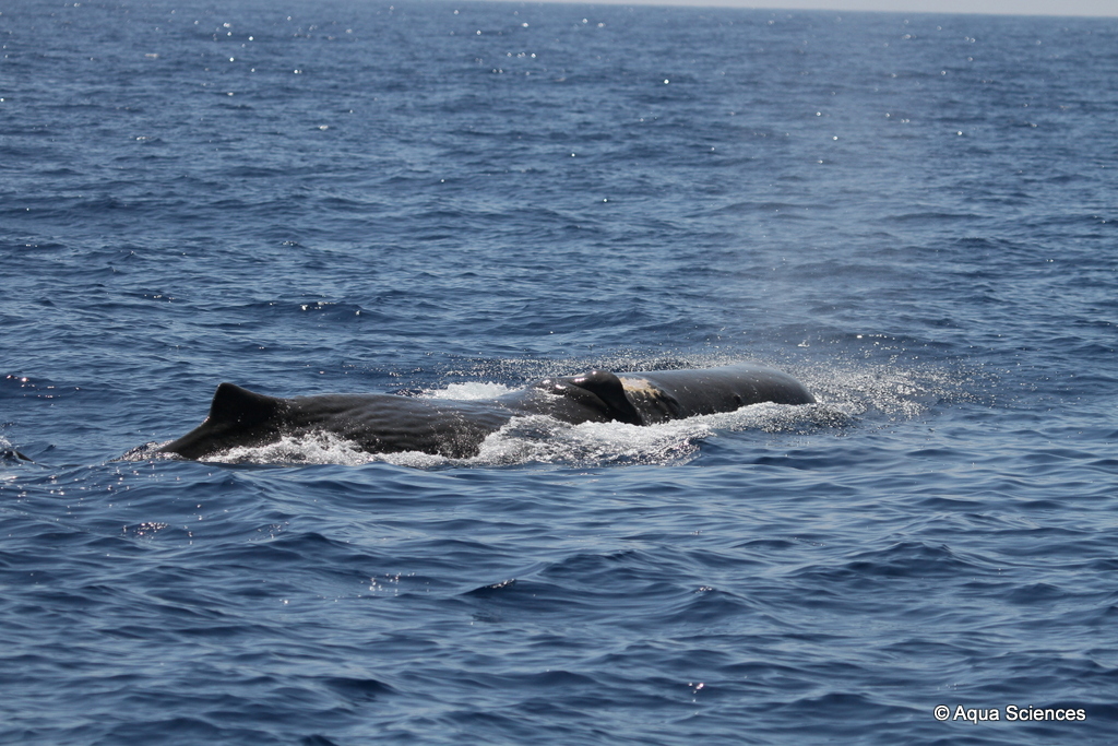 Lever aux aurores pour profiter d’une longue journée en Mer…Nos efforts sont vite récompensés par l’observation d’un cachalot « bosselé »….