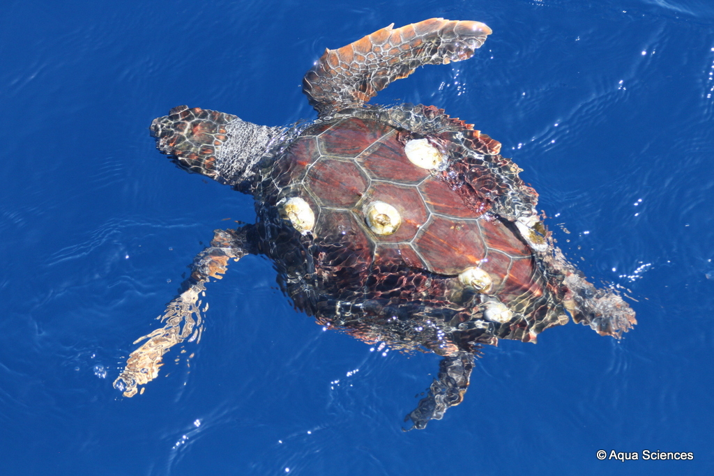 De retour vers Porquerolles, une tortue caouanne fera son apparition à l’étrave du catamaran….