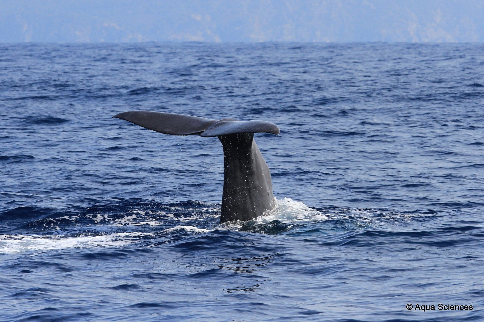 Malgré une forte houle, notre catamaran passe à quelques mètres d’un cachalot finissant sa remontée en surface…