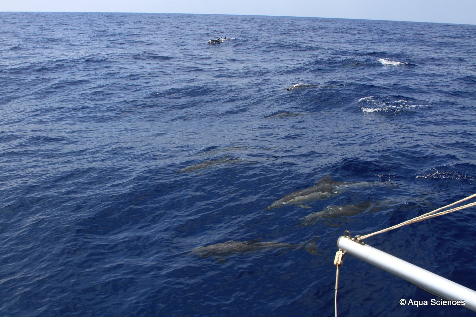 Nous avons pu profiter de leur présence suffisamment longtemps puisqu’ils ont fait le tour du bateau, sont passés sous la coque à plusieurs reprises, avant de s’éclipser…