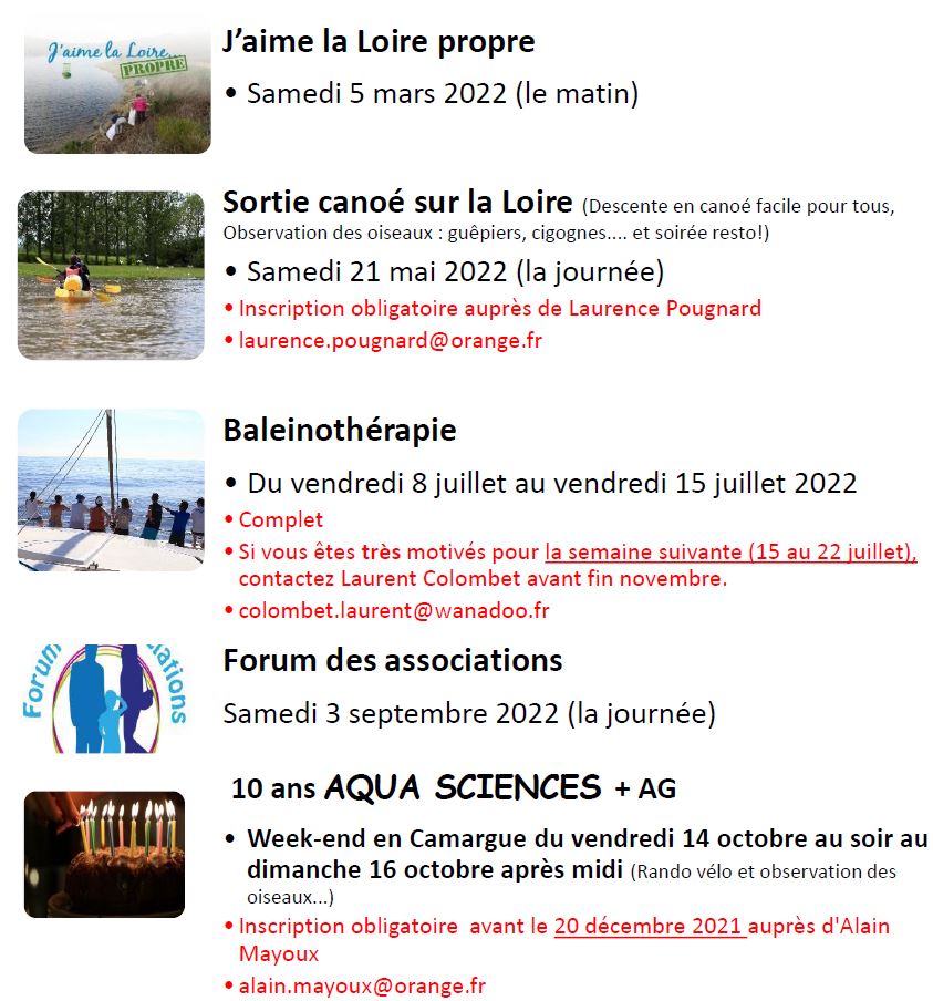 Suite à notre AG 2021, Samedi 13 novembre, Aqua Sciences vous propose le calendrier d’actions suivant pour l’année 2022.