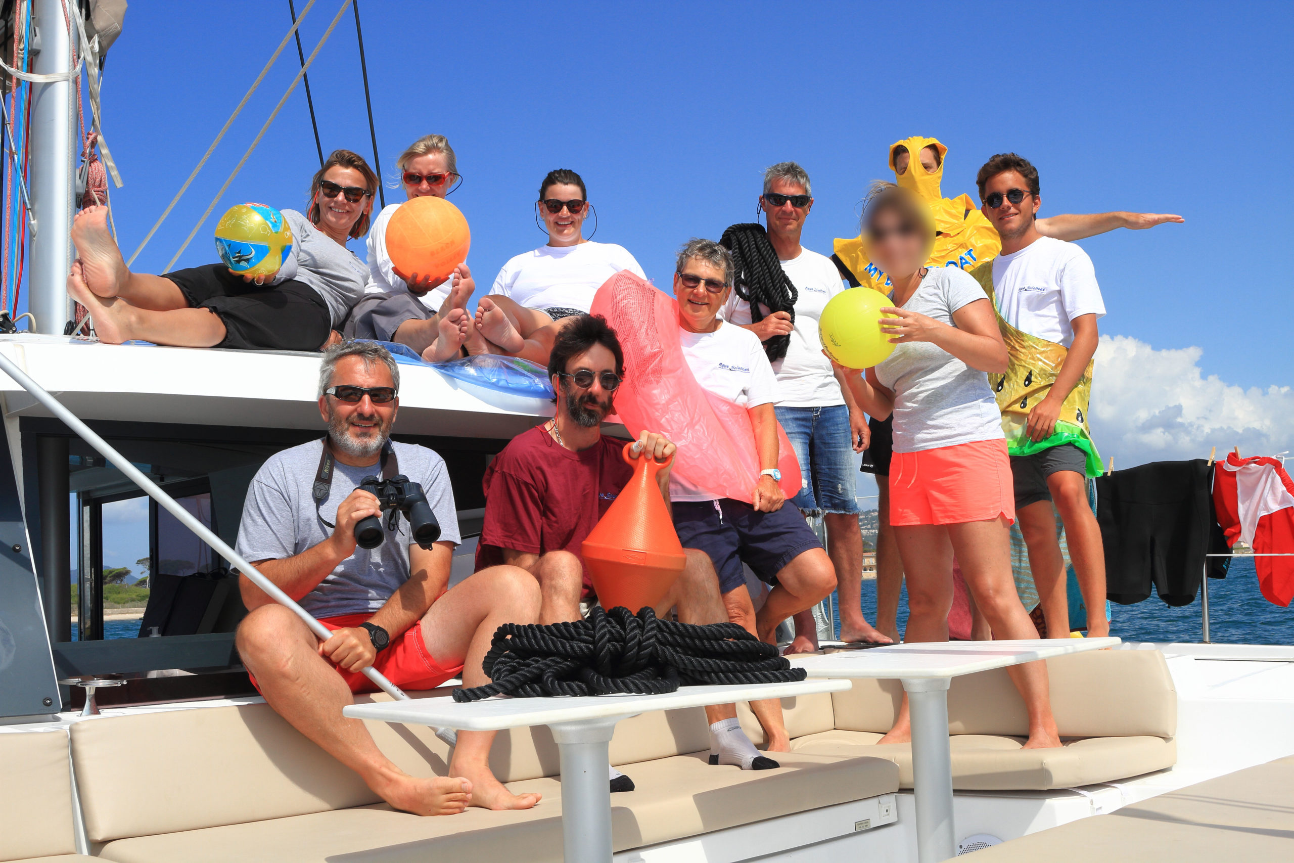 Une très belle équipe pour une très belle semaine à bord de Jane, notre catamaran.