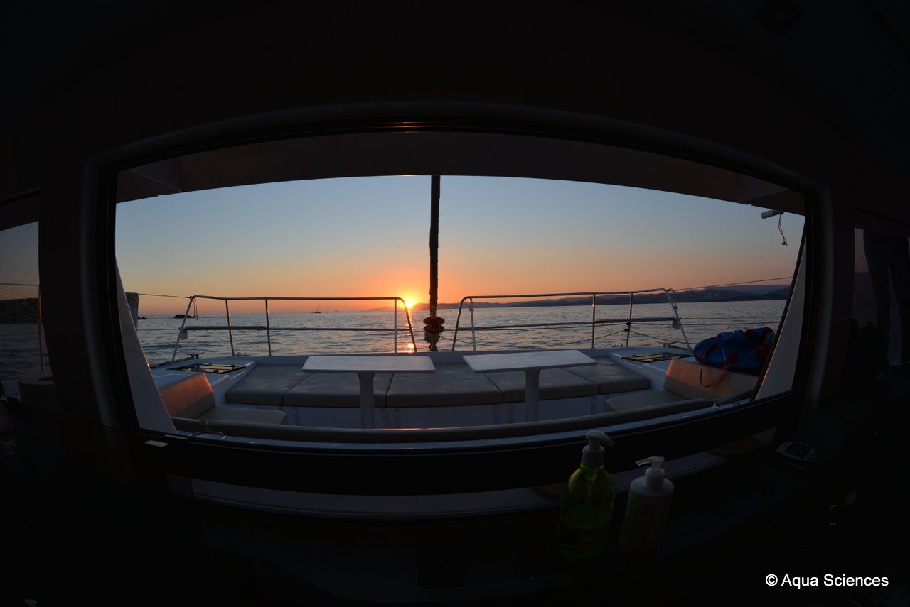Nous démarrons notre 2ème journée à 7h00 comme prévu et avec une météo maritime idéale pour l’observation des cétacés.