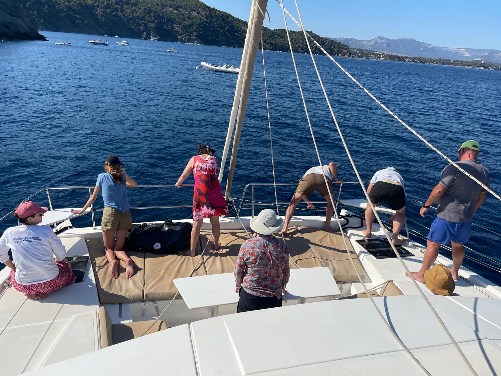 Nous allons naviguer toute la journée au large du cap Sicié dans l’espoir de rencontrer un cachalot.