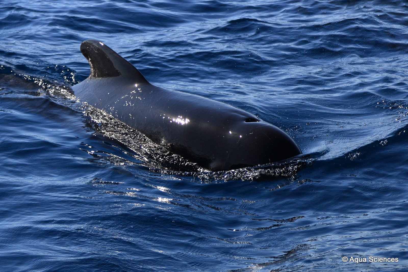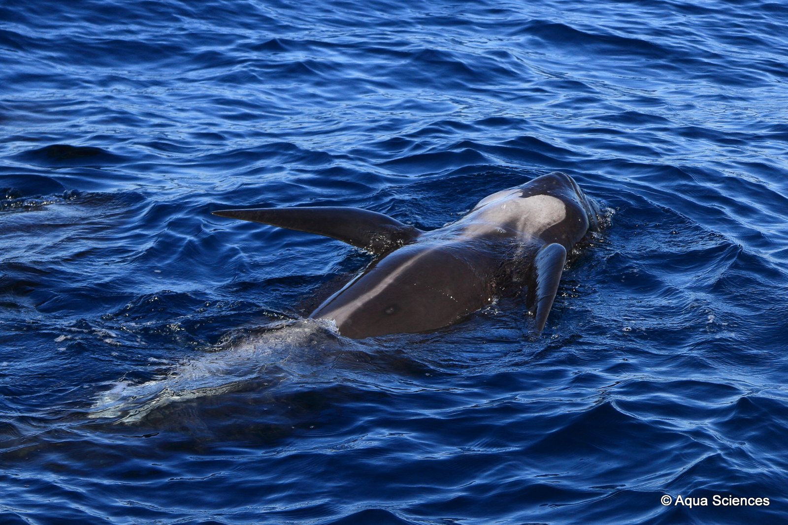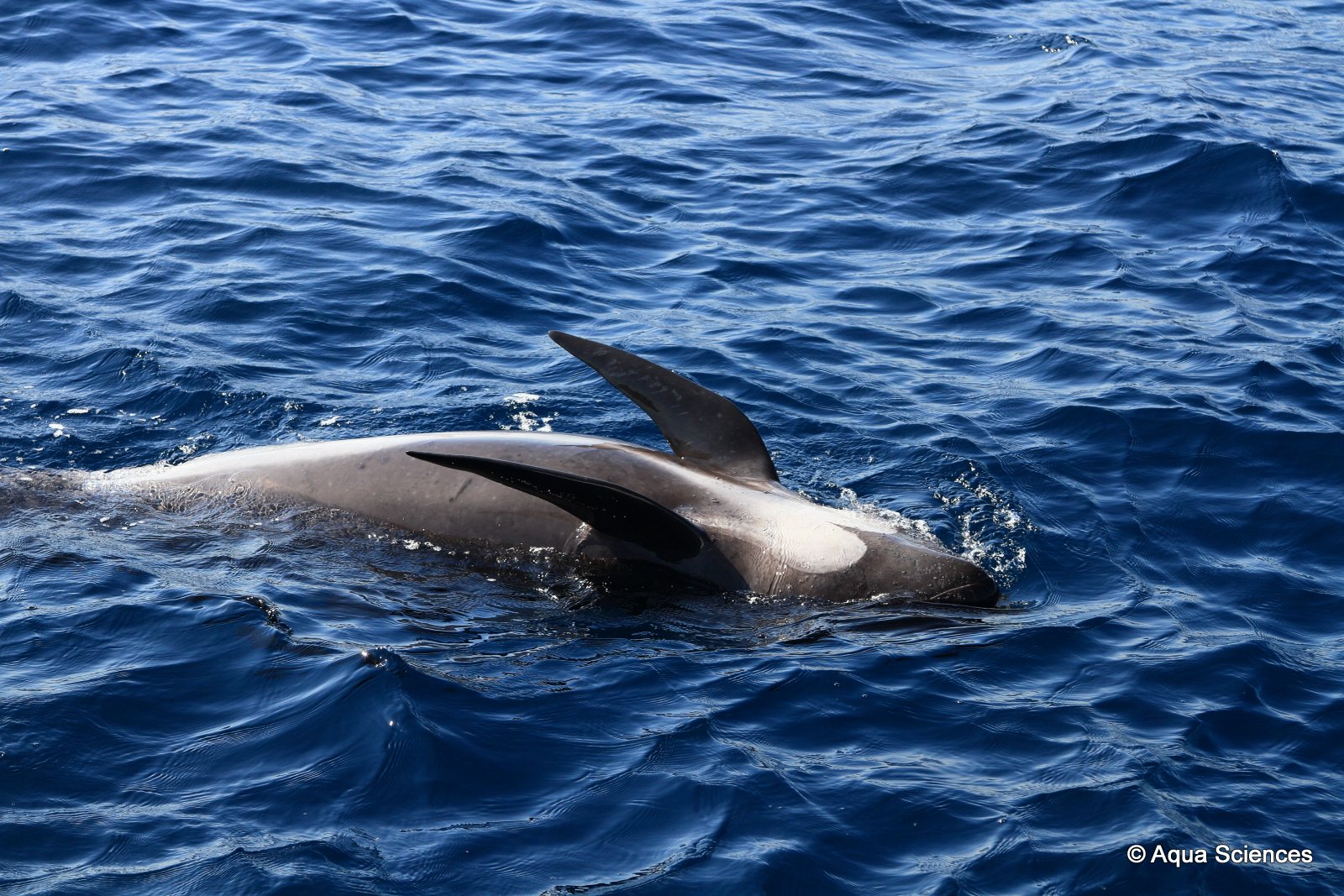 Notre résistance au mal de mer est mise à rude épreuve mais finalement récompensée par la rencontre d’un banc d’une cinquantaine de dauphins blanc et bleu…