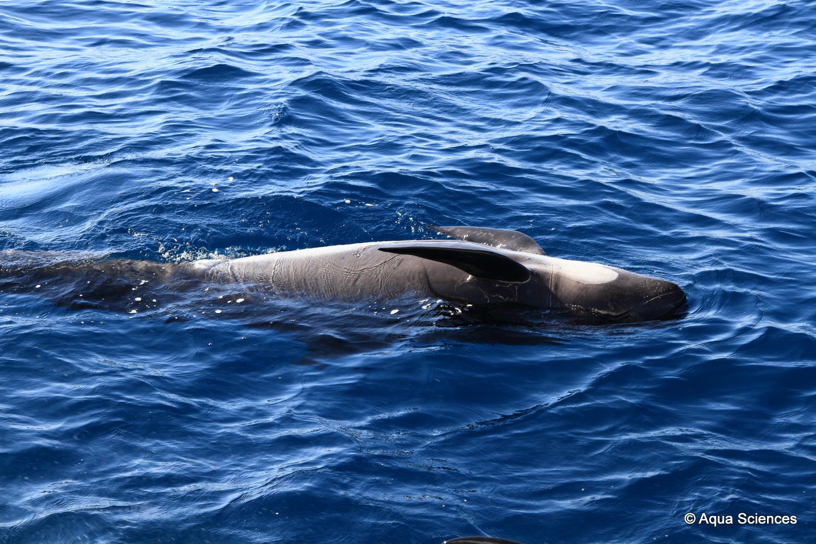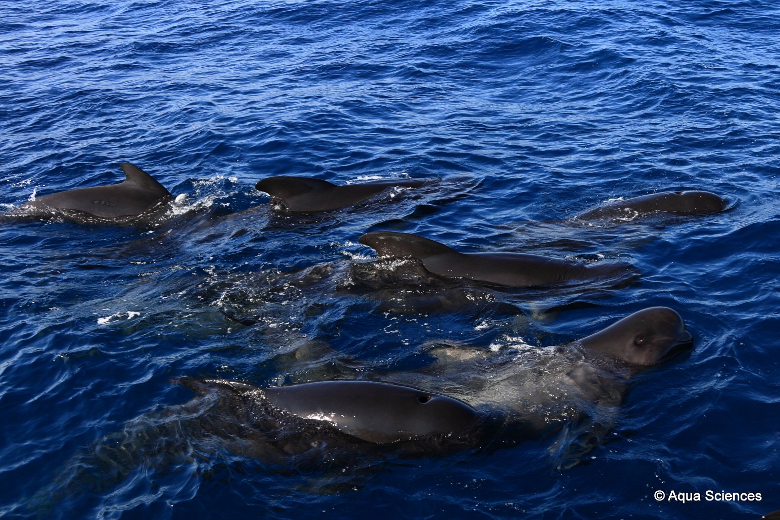 Quelle fut notre surprise lorsque le capitaine annonce “Dauphins, Dauphins!! c’est des globicéphales!!!”..;Nous affalons rapidement les voiles et faisons très rapidement les manœuvres pour les rejoindre…Nous passerons au moins une heure en leur compagnie.
