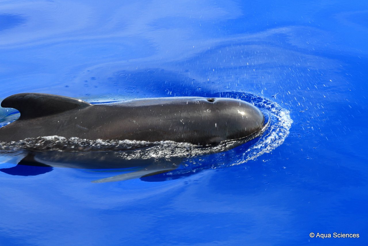 Nous croisons la route de globicéphales mais nous ne sommes pas le seul bateau intéressé et les globi se font discrets.