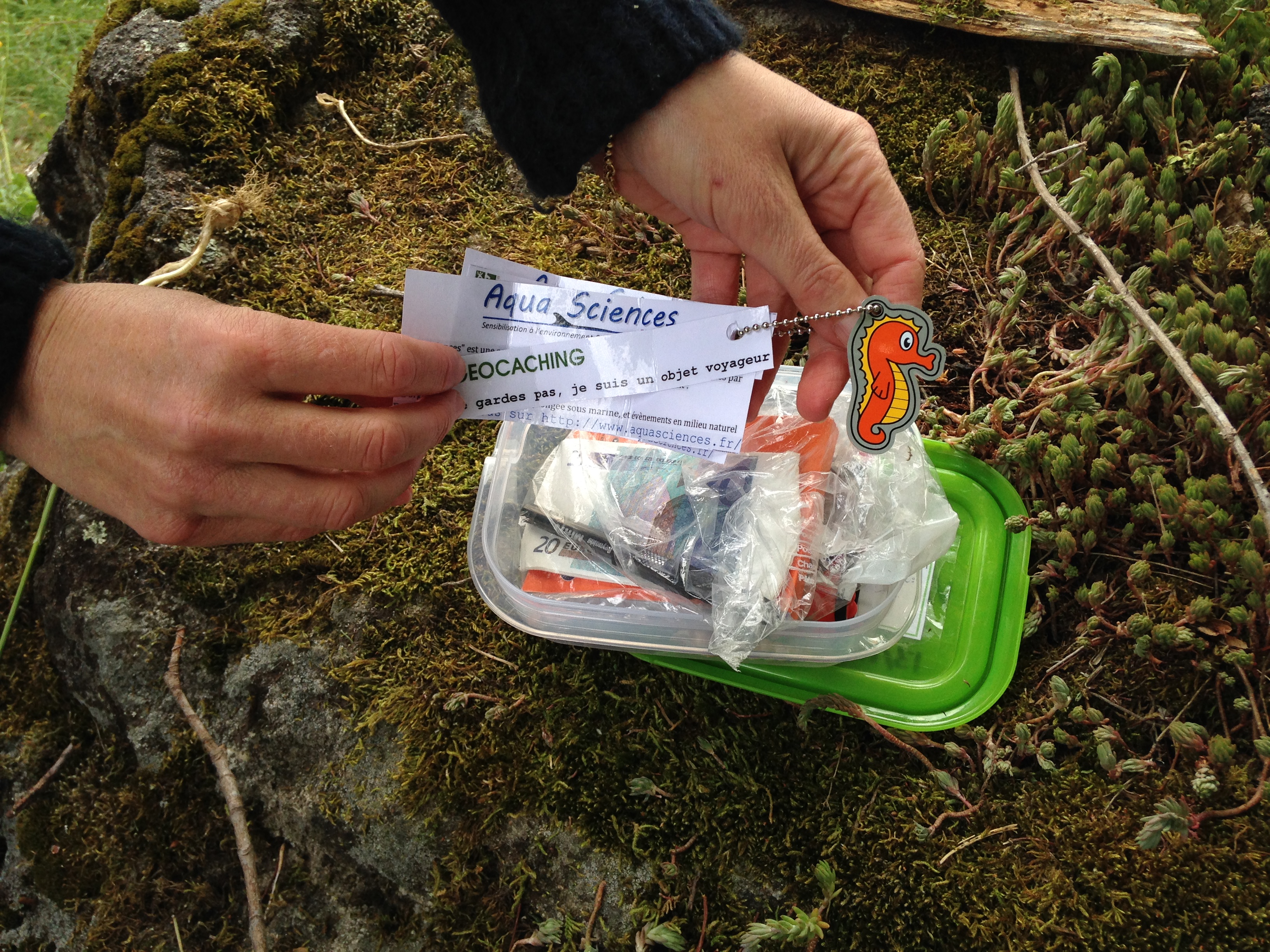 Le premier objet voyageur « géocaching » d’Aqua Sciences a été déposé aujourd’hui dans une cache à Verrières-en-Forez (Proche de la domiciliation de l’association)