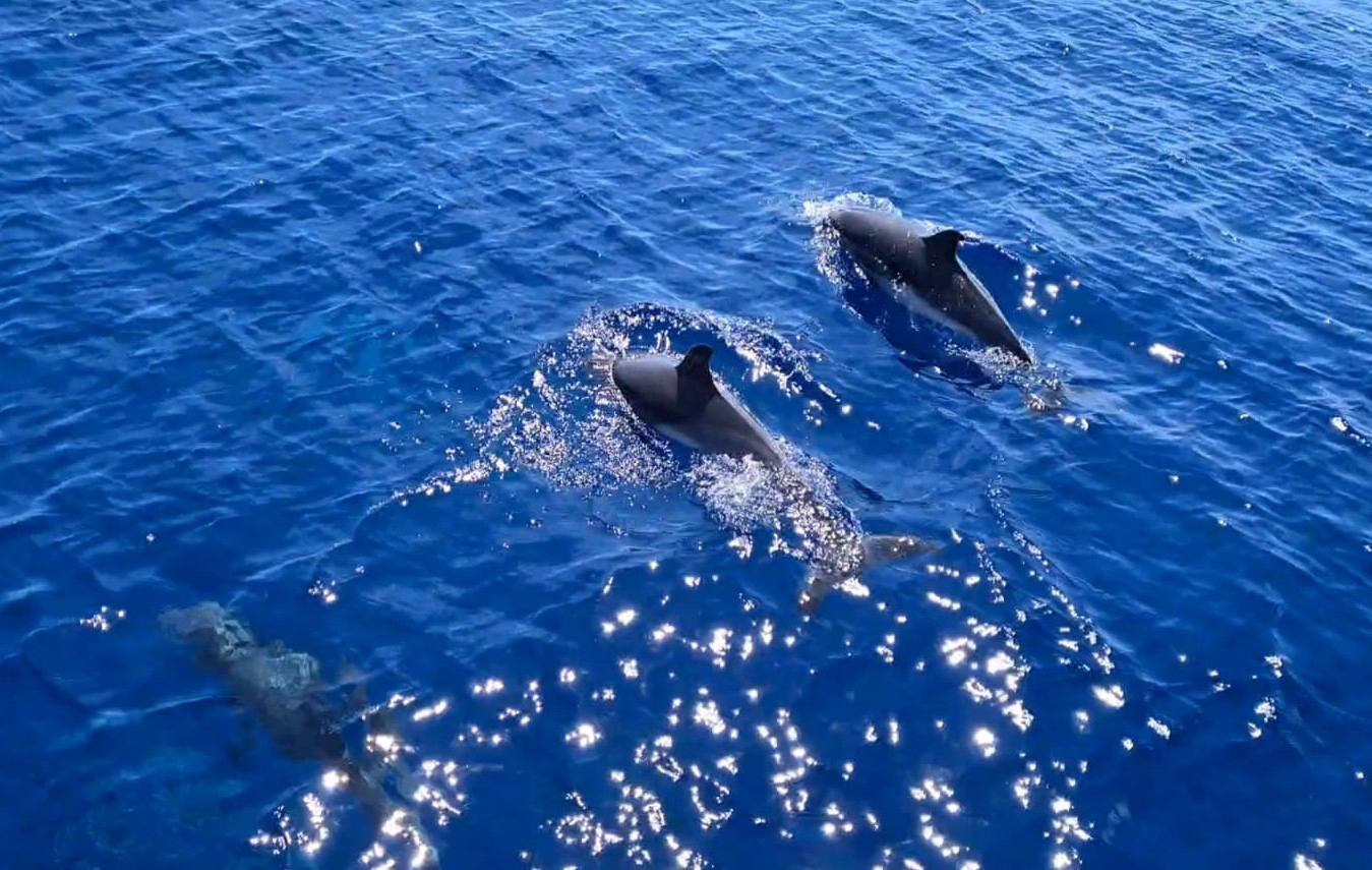 Nous repérerons quand même au milieu de ces ballons et autre bouée, des dauphins blanc et bleu, deux mola mola, un souffle au loin et des globicéphales.